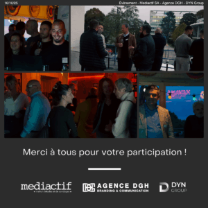 Un évènement organisé conjointement par Mediactif SA, l’Agence DGH et DYN Group !  Un moment d’échanges authentiques entre entrepreneurs, dirigeants et partenaires, autour d’un apéritif convivial au restaurant Vevey Corseaux Plage.